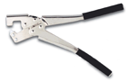 Bon's Mini Stud Crimper locks the plate and stud together to speed up the installation of steel studs. This easy-to-operate hand tool punches through two layers of 22-gauge metal to make drywall installation easier and faster. Use of the tool will not interfere with drywall, as it leaves no projections or ridges behind. The crimper is made from forged and hardened steel to ensure quality, and nickel plated to defend against corrosion. It is equipped with comfort grip handles to provide relief for hand and joint pain. The Mini Stud Crimper measures 11 inches in length. Replacement punches are available.