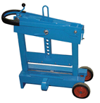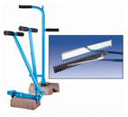 The PAVER AND WALL SPLITTER from Bon Tool Co. is designed to cut pavers and retaining wall units up to 12" thick. Bon's splitter is portable and dependence to provide a quick and easy method of cutting masonry units on the jobsite. Masonry units can be cut at any angle with the l6-1/8 inch wide cutting blade. The blade adjustment pin quickly and easily adjusts the height to one of three positions; finer adjustments can be made with the unique front crank handle. The splitter is on wheels for easy maneuverability on the jobsite. Simply lock the handle in place and the heavy-duty splitter is ready to go. Other tools offered in Bon Tool's line of paver handling products include additional splitters, a slab mover, sand and base rakes, curb tongs extracting tongs and an alignment bar.
